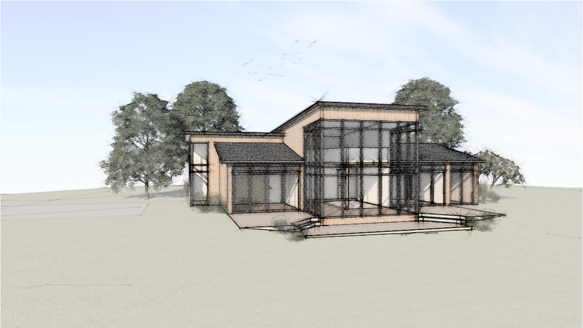 A modern retreat for family and friends, the 1,900 SF structure will embrace its scenic central Pennsylvania landscape, providing occupants with vistas of the surrounding meadows and woodlands.Â